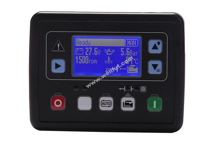 ※控制器面板上的按鍵用于選擇控制模式,啟動和停止運行程序。數(shù)據(jù)顯示和運行保護(hù)參數(shù)的修改,LED指示燈用于只是控制器的運行模式和發(fā)電機組的運行狀態(tài),LCD顯示各測量參數(shù)和狀態(tài)
